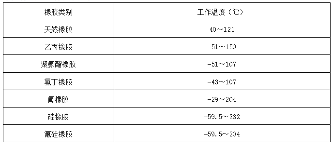常見(jiàn)橡膠的工作溫度范圍